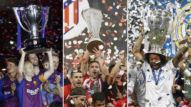 Los Blancos picked up the Champions League, the Spanish Super Cup, the European Super Cup and the Club World Cup; Barcelona won the league and cup double; while Atletico Madrid lifted the Europa League.