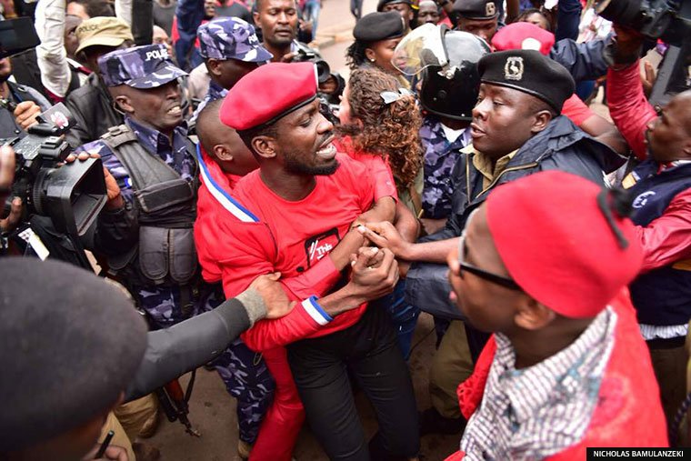 However, as they approached the City Square, they were invaded by the police which could not allow the demonstrations to continue towards the parliament. They started rioting with the police and teargas with live bullets immediately filled the air. All this was happening as the police tried to pull Bobi to their ‘Kabagali.’