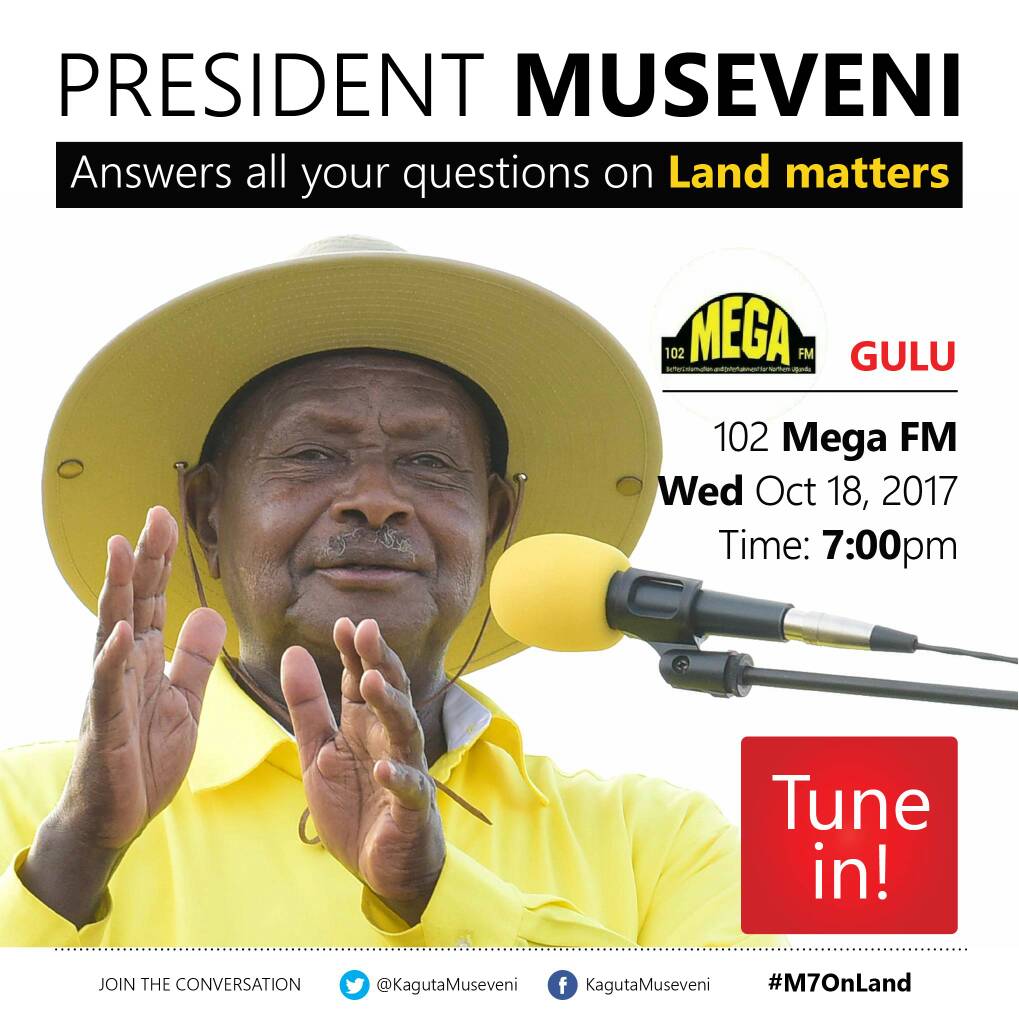 President Yoweri Museveni has explained to the people of Northern Uganda and the country as a whole that the proposed Land Amendment Bill will quicken the time taken by government development projects to kick off and also ensure that government is not cheated in the exercise of land compensations. The President made the remarks last evening in a live phone-in radio talk show one of the radio that is based in Gulu Municipality. The President is currently in Northern Uganda to sensitize the people in that area about the proposed Land Amendment Bill.